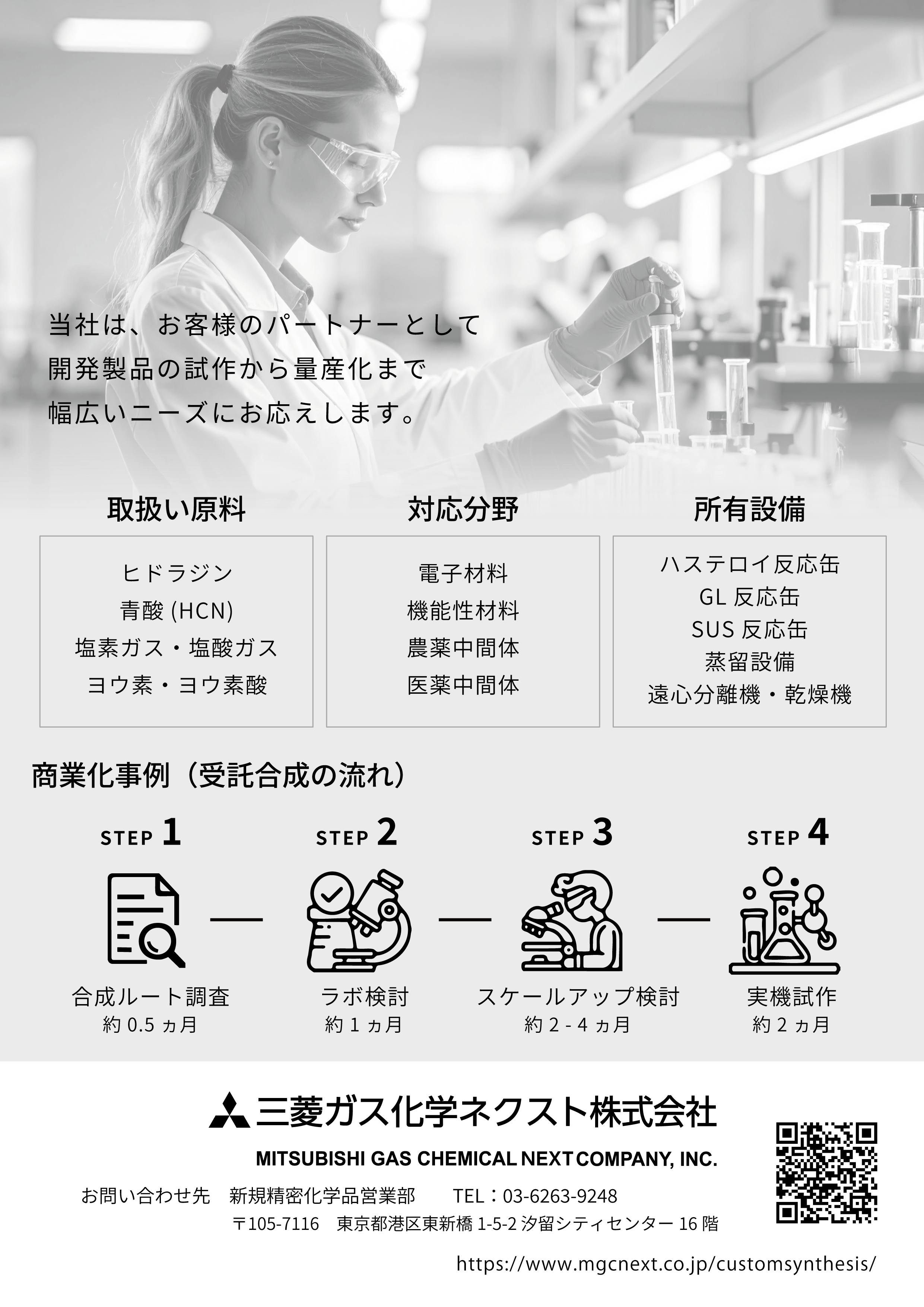 三菱ガス化学ネクスト株式会社(本社:東京都港区、社長:大塚 裕之)は、2025年10月1日発行の有機合成化学協会誌 第83巻 第10号に、当社の広告を掲載いたしました。