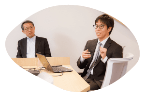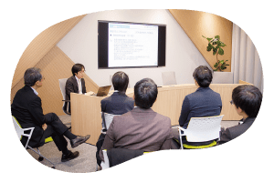 オブザーバー役の大塚社長も、3つの部屋を順に回り、メンバーの話に耳を傾けます。合間合間には、自身の知見を踏まえた参考意見も述べ、それを糸口にさらにメンバーの話が弾みました。