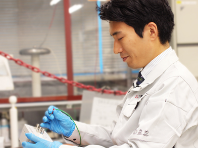 私の就職活動は「自らの手で、世の中になくてはならないものを生み出す仕事に就く」というコンセプトで行いました。偶然見た求人票がきっかけでしたが、この会社でしか生産できない製品が産業や医療など社会の重要な場面で使われていることに魅力を感じ、入社を決めました。前職の鉄道エンジニアリング会社の知識はほとんど生かせませんし、大学時代に学んだ内容とも異なっていましたが、入社後に多くのことを学ぶので心配はありませんでした。現在は、高抵抗器の製造工程改良に取り組んでおり、新しく導入予定の製造装置を問題なく稼働させるために、条件検討、保守管理方法の確立、基準書の整備などを行っています。