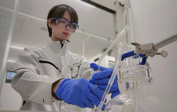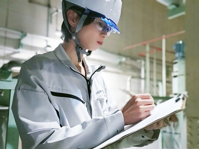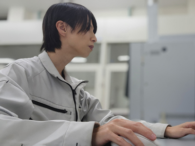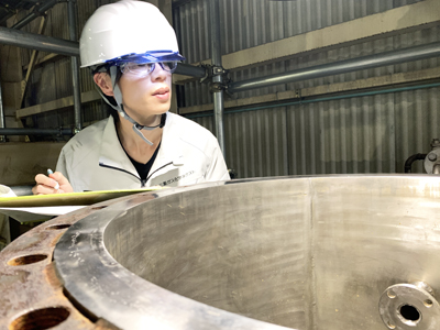 学生時代に有機化学を専攻しており、仕事も化学に携わりたいと思いこの業種を選びました。この会社を選んだ理由はインターンシップの際に職場の雰囲気が良く、一緒に働きたいと感じたためです。「化学が好き」で就職しましたが、設備の自動化に関わる仕事に携わっていくなかで化学よりも得意に、そして化学よりも好きになっており、仕事を通して新しい知識を身につけられ活かせるようになっていくことに面白さを感じています。現在は自動化を目的とした新たな設備導入や、時短や原料ロス削減によるコスト削減を目的にプロセス改善の検討を継続して行っています。